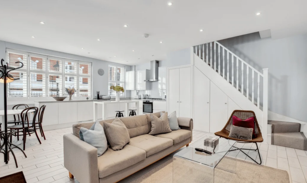 The house is located in a peaceful mews, just around the corner from Chelsea‘s famous Kings Road – wonderful array of cafés, restaurants, pubs, bars, and shops, leading all the way to Sloane Square station.